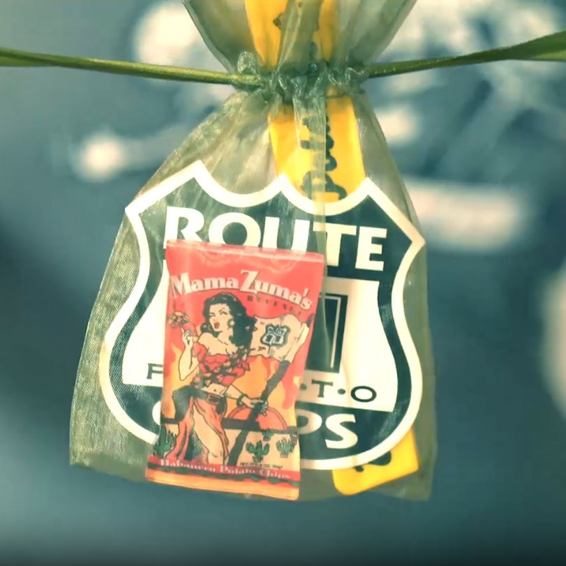 A drawstring bag filled with goodies you usually can get only at the factory! Contents may vary, but generally include 1 dip mix, 1 chip clip, and 2 stickers in an an organza drawstring bag.